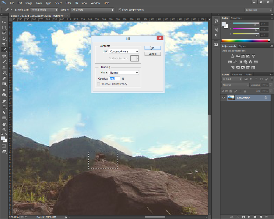 참고: 초간단 포토샵 사진 합성. 물체나 사람, 인물 지우기. 몇번의 클릭만으로 가능한 Content-Aware Fill
