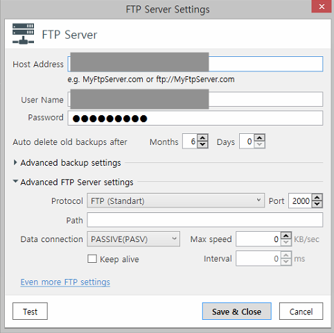 FTP 뿐만 아니라, 그 외의 다양한 저장 장소로 백업을 지원합니다.