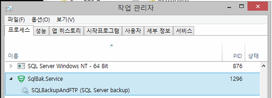 독립적인 프로세스 서비스인 SqlBak.Service 실행으로,