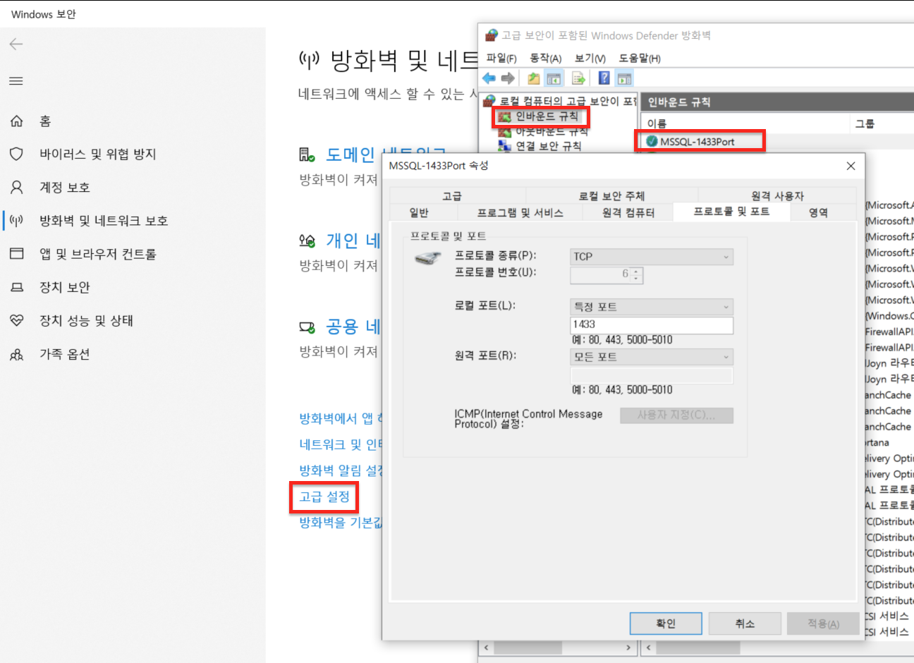 추가로, 보안쪽에서 SQL Server가 사용하는 PORT에 대한 방화벽의 Inbound처리를 Open 해줘야 외부에서 사용이 가능합니다.