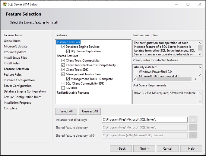 현재, 영문버전의 SQL Sever 2014 Express의 설치 과정입니다.