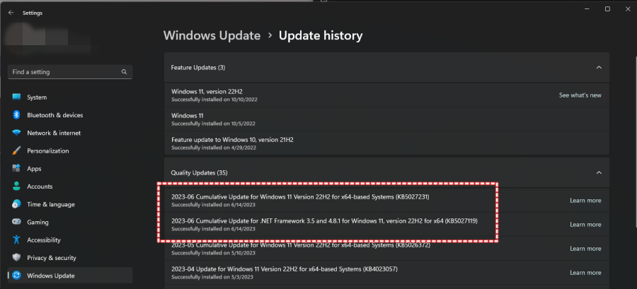 [ 6/13/2023 윈도우 Cumulative Update for .NET Framwork .35 ...이후 오류 발생 ]
