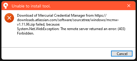 Sourcetree가 제대로 설치가 되고, Install tools 단계에서 오류가 생길 수 있습니다.