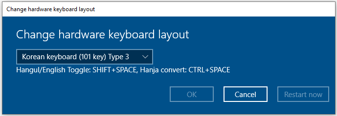 (윈도우 업데이트로, "한글 키보드(101키)종류3" 키보드 설정에서 한영키가 안되는 경우가 있습니다.)