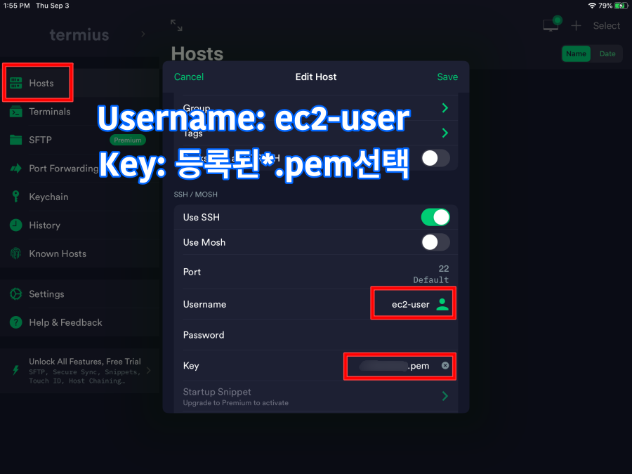 iPad(Termius)로 AWS EC2 서버에 SSH 연결하기